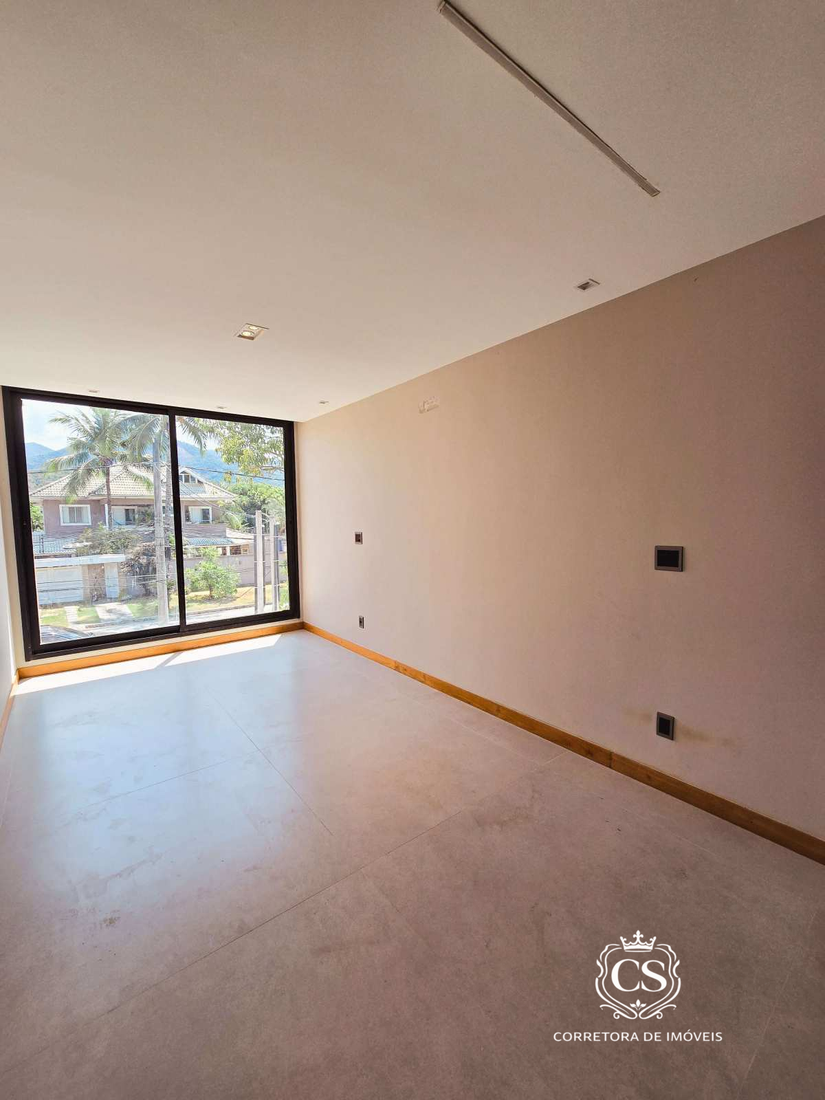 Casa contemporânea duplex na Barra da Tijuca, próxima à Av. das Américas. Imóvel de primeira locação, com 420m² de área construída em terreno de 368m², excelente padrão de acabamento e marcenaria impecável.