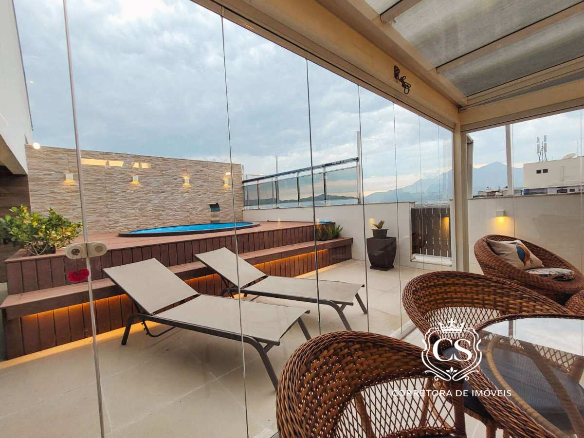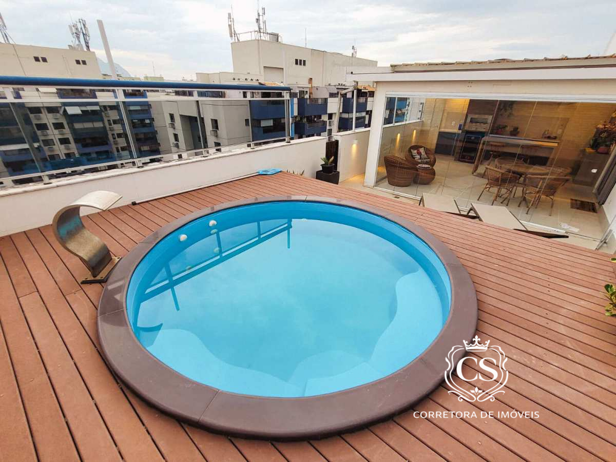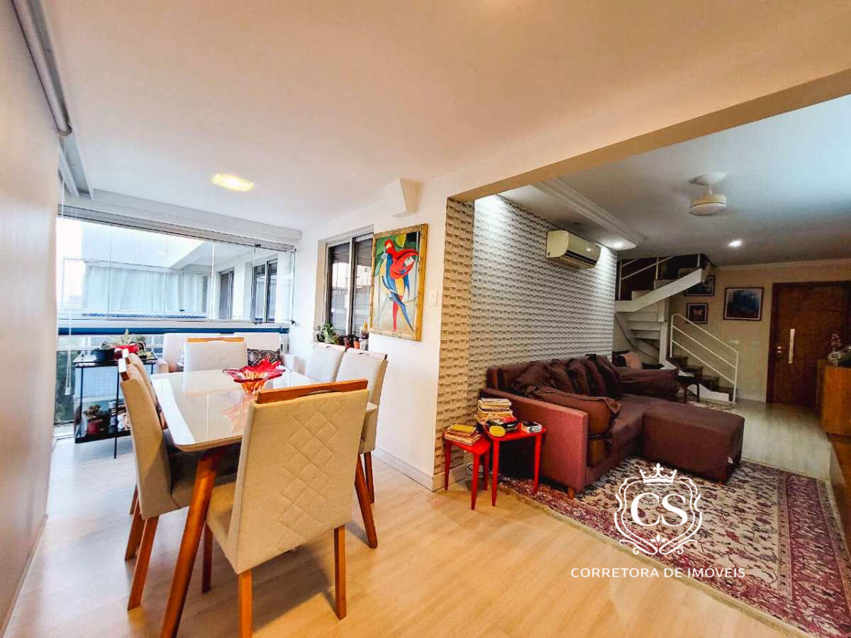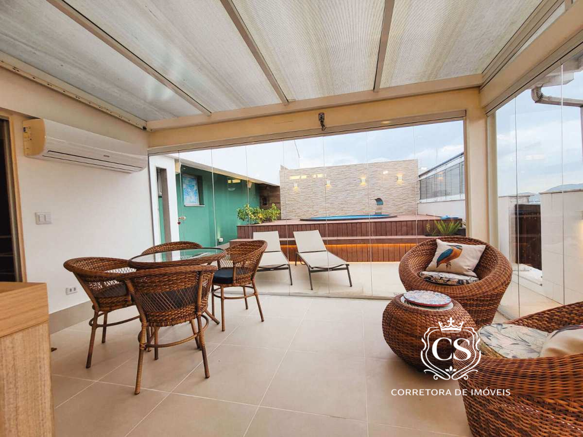 Cobertura duplex no condomínio Normandie Rio 2, Barra – Rio 2. São 182m² com sala ampla em dois ambientes, cozinha com área de serviço e banheiro de serviço, 3 quartos (1 suíte) e banheiro social no 1º pavimento.