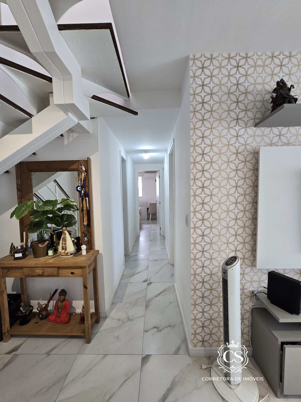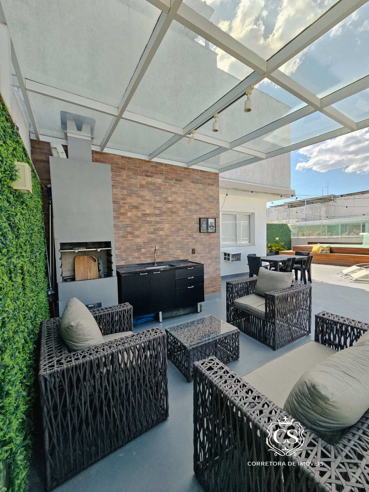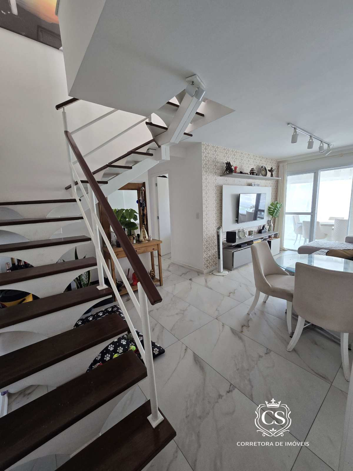 1º pavimento: sala ampla em dois ambientes, cozinha, área de serviço, ampla varanda com cortina de vidro, banheiro social e 3 quartos (1 suíte).